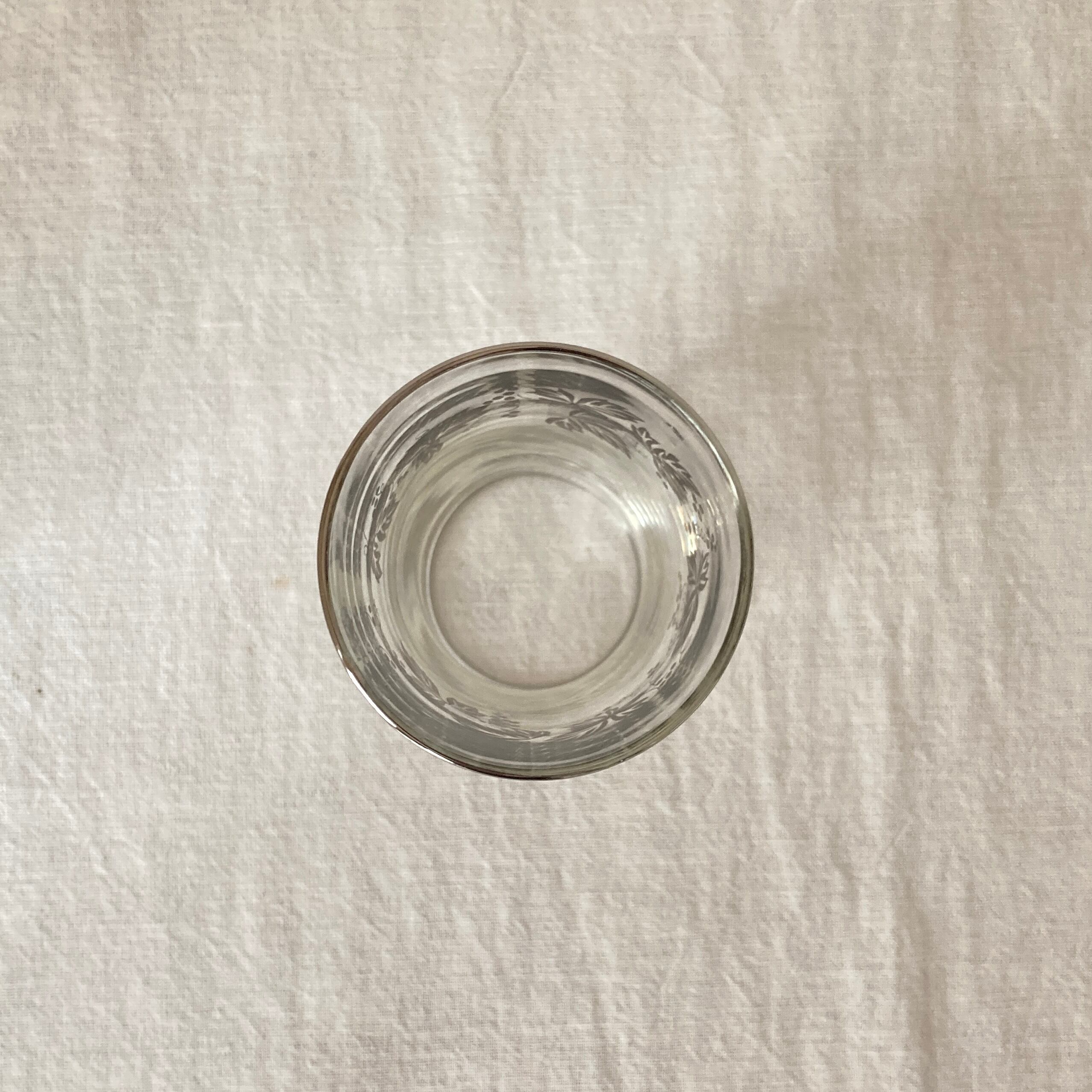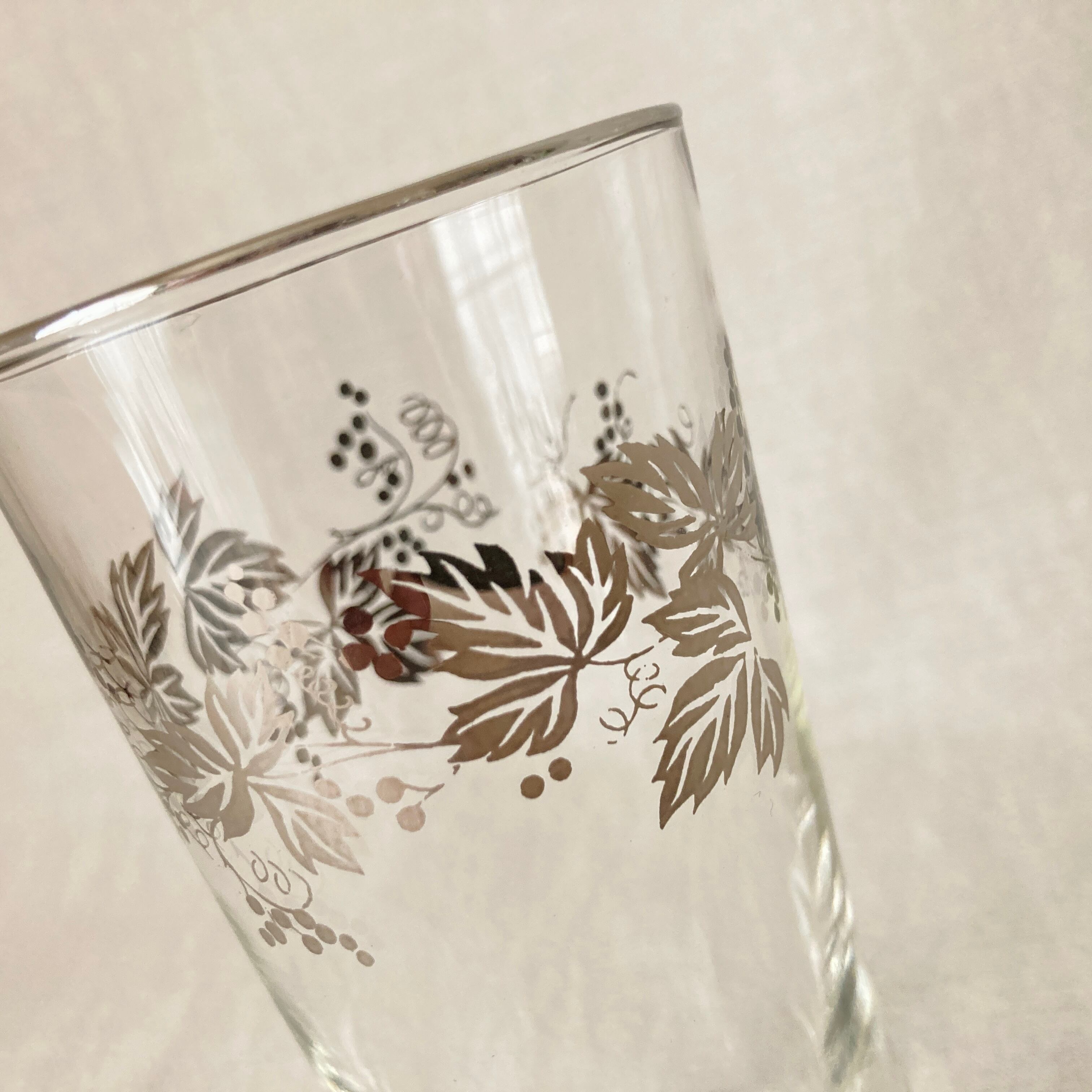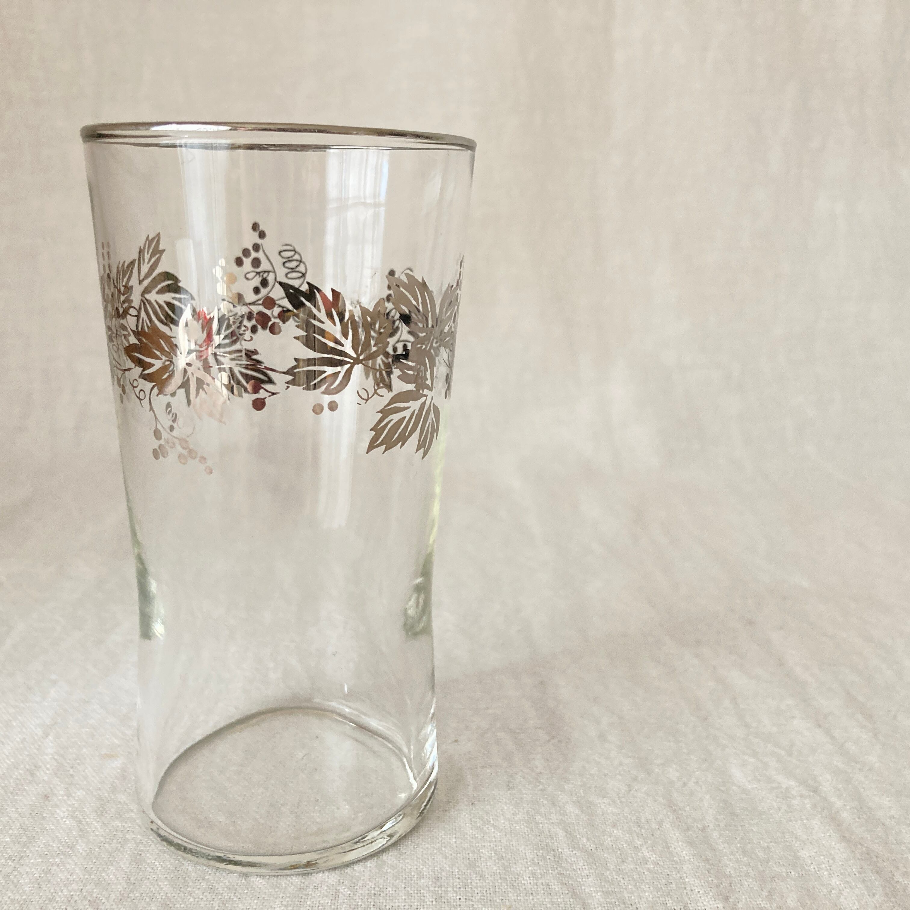 東洋ガラス製 シルバーの植物柄のコップです。