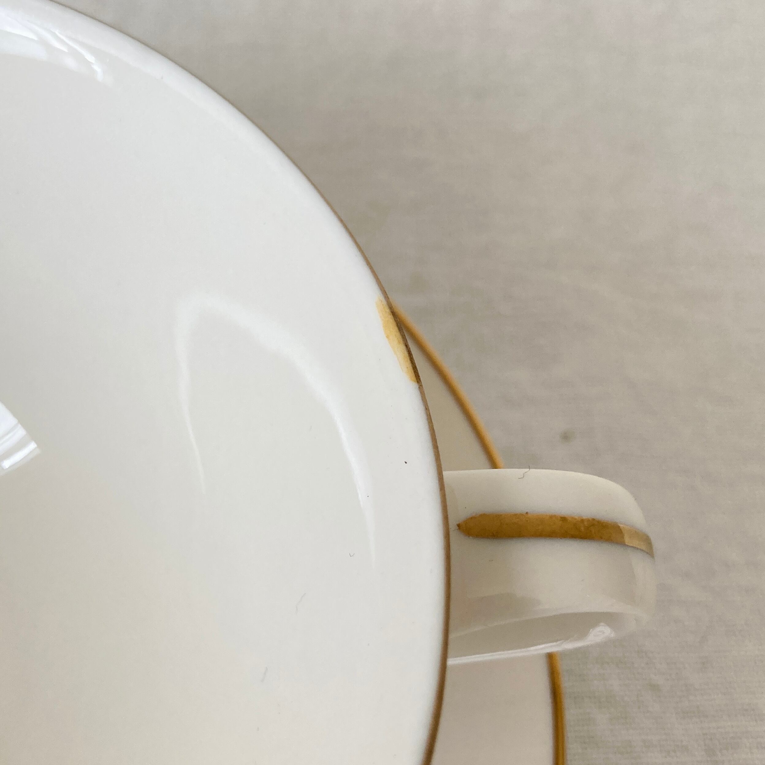 特に目立つ傷やかけ等はありませんが、1点だけカップの淵に経年による変色が見られます。