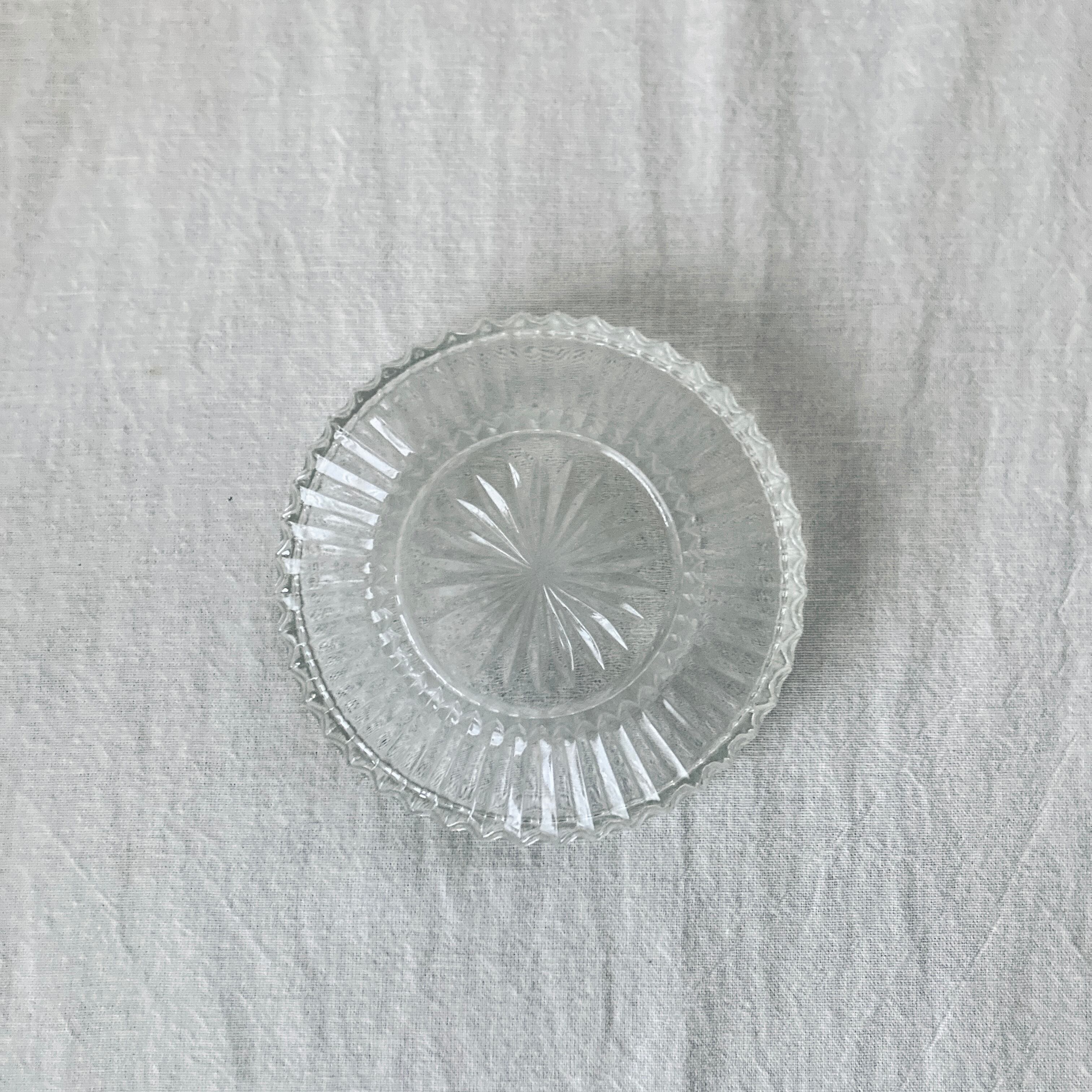 クリアガラスの平皿。メーカー不明です。